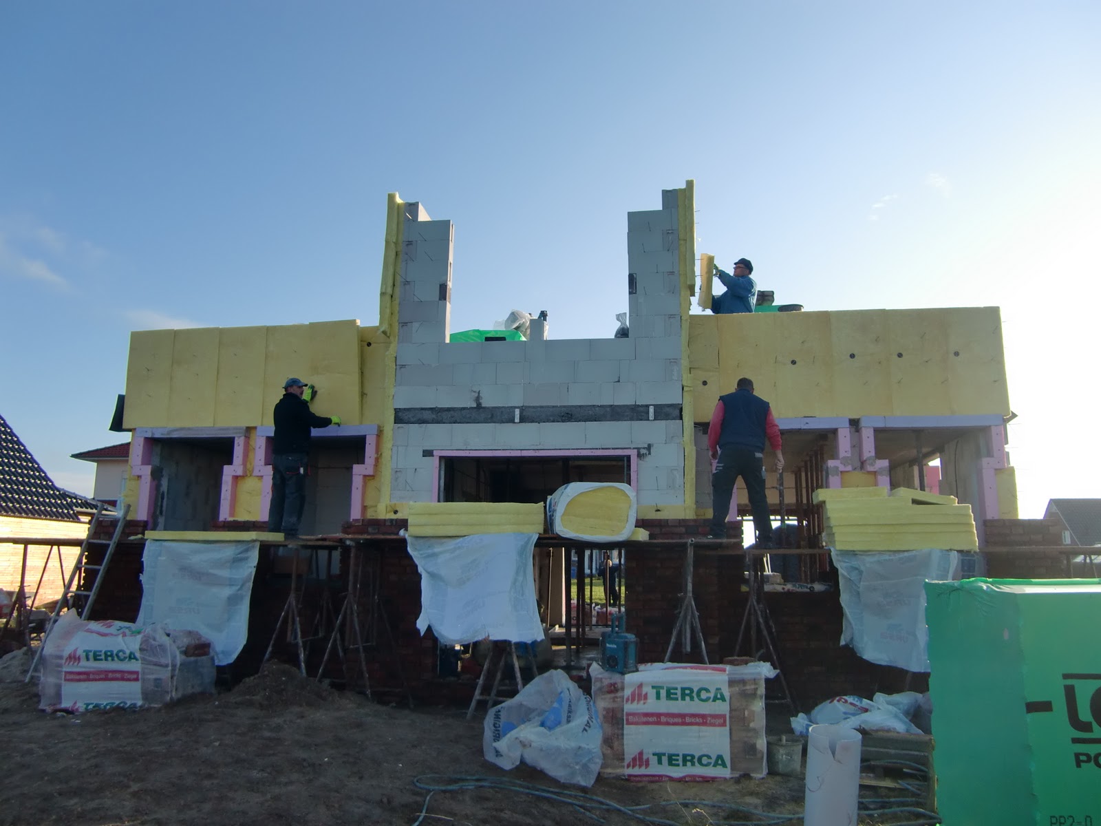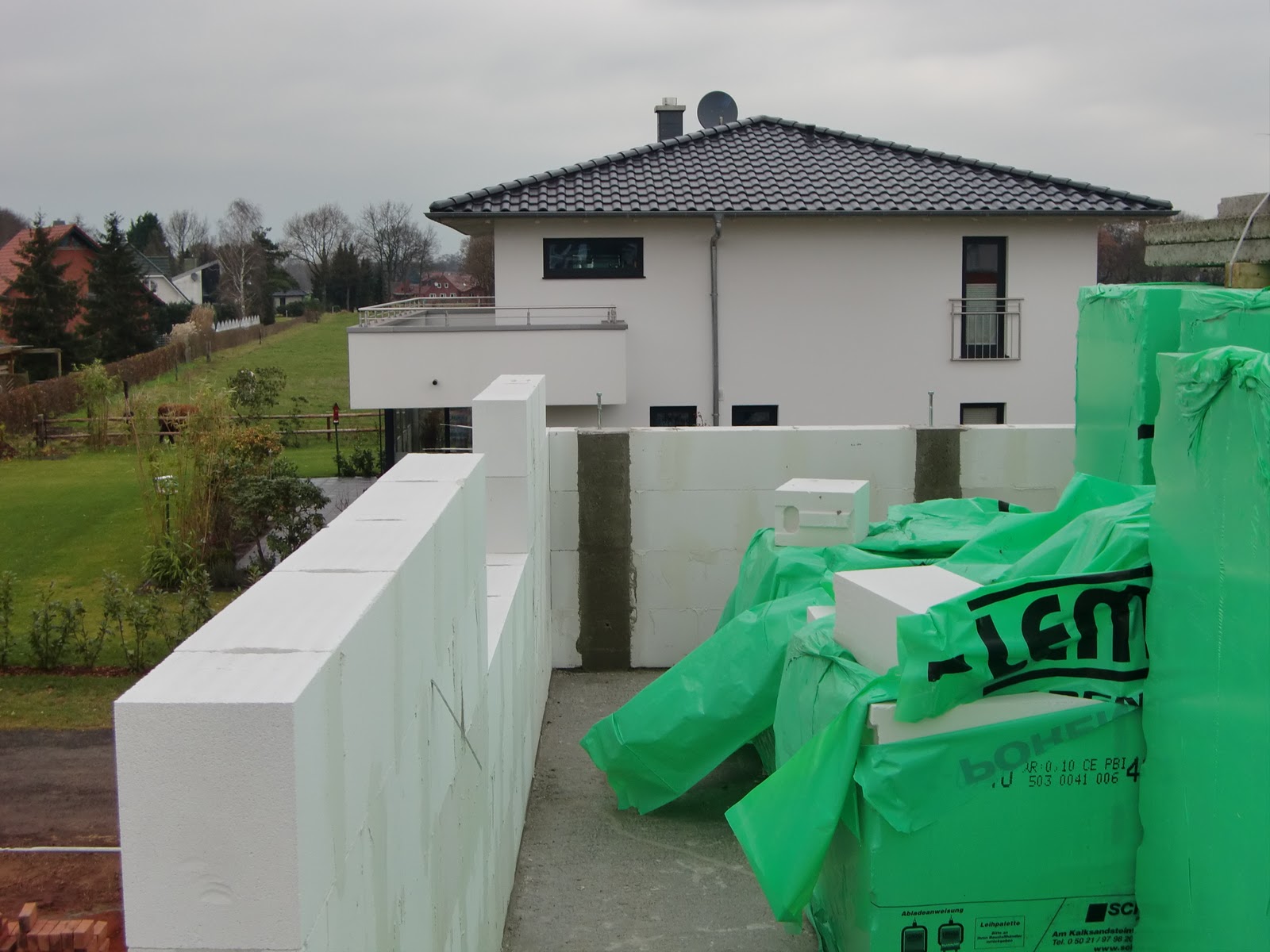 Am Freitag statteten wir unserem Haus wieder mal einen Besuch ab. Die Maurer sind fleißig am Klinkern. Hinten ist der Klinker schon Deckenhoch, so dass man einen guten Eindruck vom Klinker und auch von den Rundbögen über den Fenstern bekommen kann..und wir sind begeistert::-)