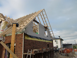 Aber nicht nur die Zimmerleute waren fleißig, sondern auch unser Maurer-Trupp..bei Wind und Wetter haben sie unser Haus geklinkert und es sieht einfach großartig aus..vielen Dank dafür!!