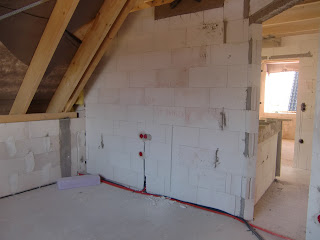 Der Elektriker war bereits da und hat einzelne Räume fertig gestellt. Auch der Heizungsinstallateur hat unserem Haus einen Besuch abgestattet und hat Vorbereitungen für die Wasserrohre und die Heizung getroffen. Dies verlief leider nicht ganz so glücklich. Bei der Hausbegehung mit dem Installateur kamen wir nicht ins Obergeschoss, weil keine Leiter vor Ort war. Somit konnten wir dort nicht die genauen Orte der Heizkörper und Wasseranschlüsse besprechen. Dies sollte dann kurz vor Beginn der Arbeiten nochmal abgeglichen werden. Dies passierte jedoch leider nicht! Glücklicherweise wurde aber fast alles richtig vorbereitet. Dennoch haben wir uns darüber etwas geärgert und dies auch der Installationsfirma sowie Herrn Hanekamp mitgeteilt. Die Firma haben sich sofort dafür entschulidgt und Herr Hanekamp setzte sich auch direkt mit denen in Verbindung. Kurze Zeit später klingelte unser Telefon und der Heizungsbauer teilte uns den Termin für die Hausanschlüsse mit und versprach, sich vor der Weiterarbeit im Haus sich bei uns zu melden, damit ein Treffen im Haus stattfinden kann. Insgesamt scheint sich die Sache ohne negative Auswirkungen geklärt zu haben.